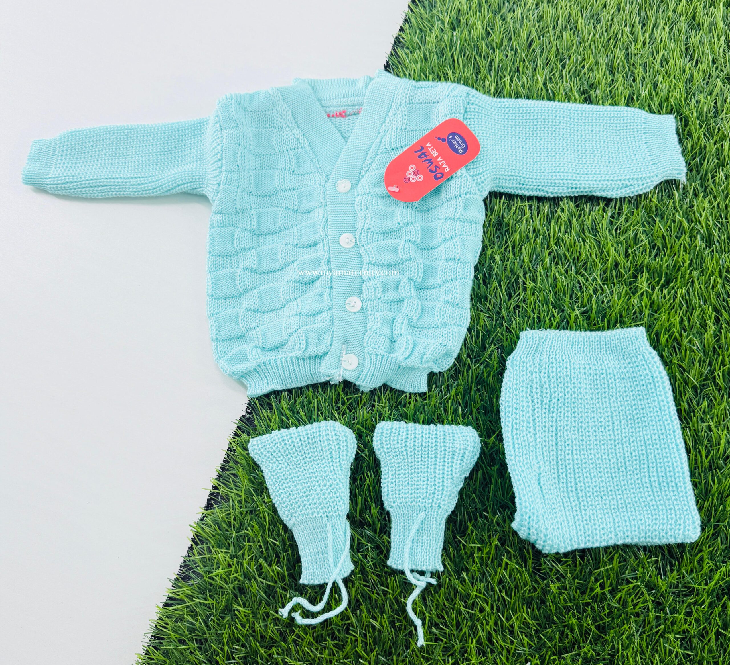 Package contain 1 premium design and best quality sweater cardigan with matching cap and pair of socks.